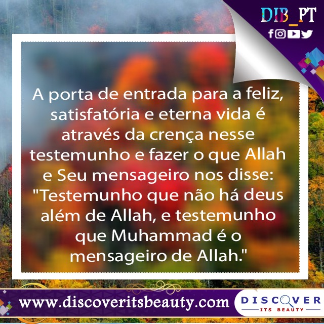 86. A porta de entrada para a feliz, satisfatória e eterna vida é através da crença nesse testemunho e fazer o que Allah e Seu mensageiro nos disse: ""Testemunho que não há deus além de Allah, e testemunho que Muhammad é o mensageiro de Allah.""